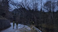 Ein Baum entlang der Landesstraße Richtung Obermühl hat heute den Windböen nicht Stand gehalten.