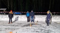 In der Wildparkstraße war eine etwa 400m lange Ölspur zu beseitigen. Wir haben das ausgelaufene Öl gebunden und die Straße mit der Kehrmaschine gereinigt. Nachdem die Geräte wieder versorgt waren, ging es dann mit dem Stockschießen los. Trotz eisiger Kälte spielten mehr als 20 Kameraden spannende Partien auf 3 Bahnen 🥌