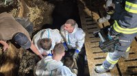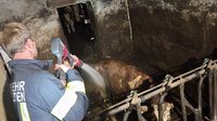 12 Mann rückten heute Abend nach einer stillen Alarmierung zu einer Tierrettung aus. Ein Kalb war in den Spaltboden gestürzt und konnte nur mit vereinten Kräften wieder befreit werden.